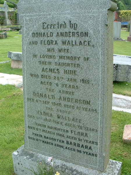 Grave of Donald Anderson, Flora Wallace and family, Kilkerran Cemetery, Campbeltown