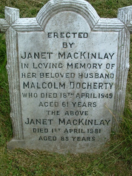 Grave of Malcolm Docherty and Janet MacKinlay, Kilkerran, Campbeltown